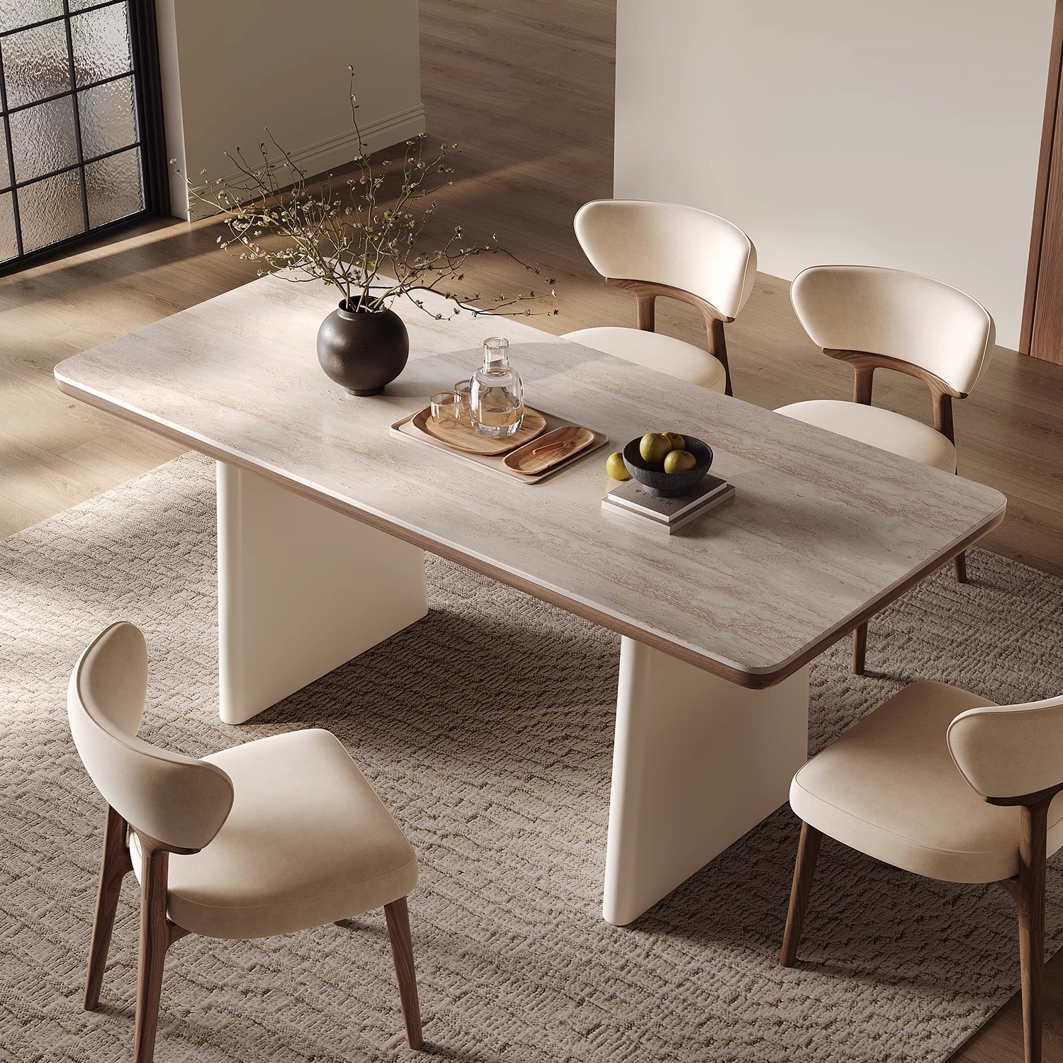 Tabletop: Granite slab + medium-density fiberboard + fiberglass foot + hardware accessories